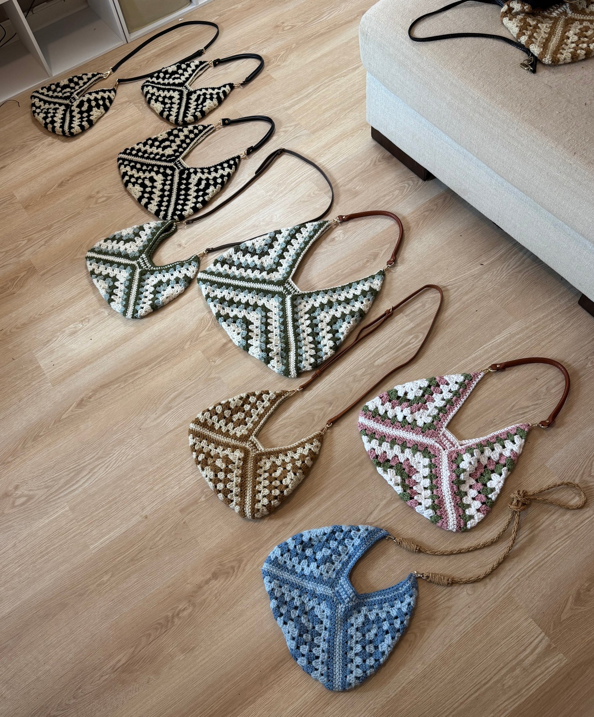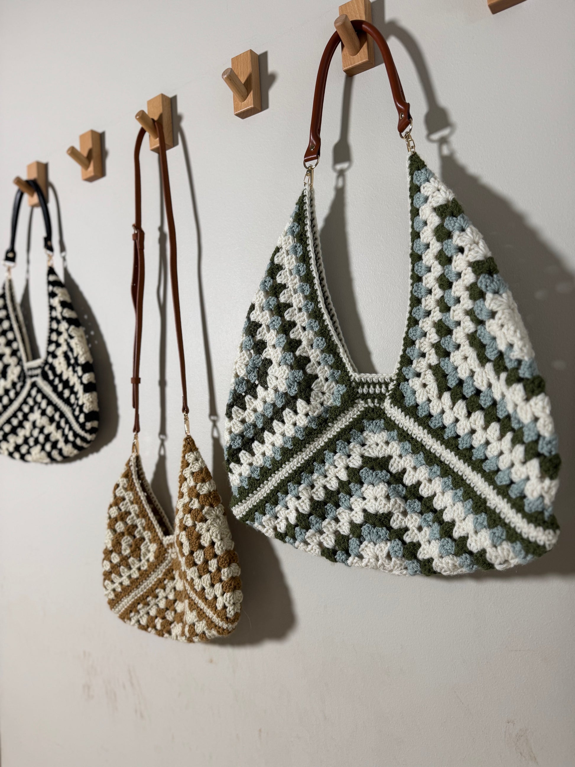 Granny Square Triangle Bag Crochet Pattern | Small, Medium & Large Sizes | Beginner Friendly Tote | PDF + Full Video Tutorial