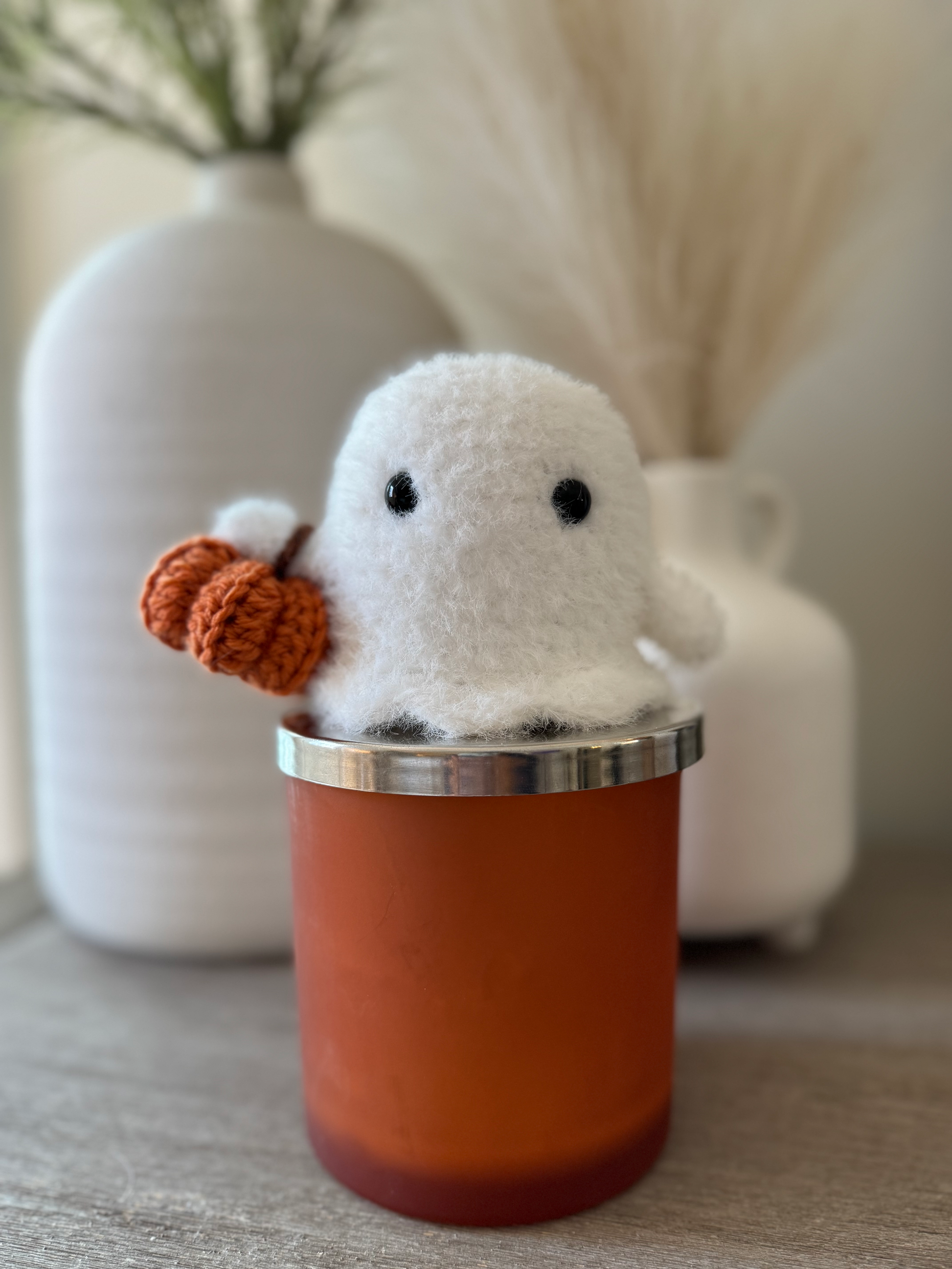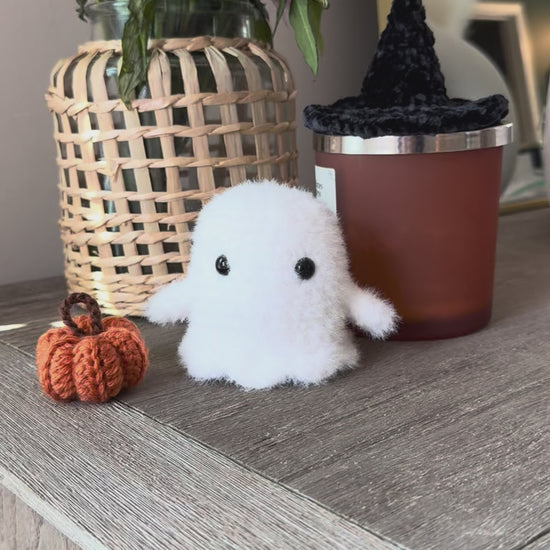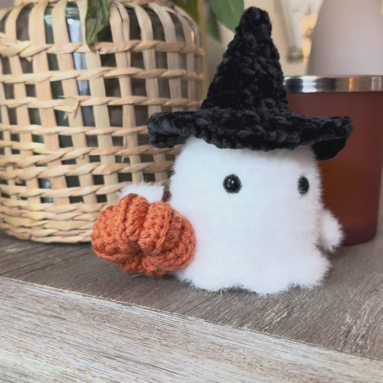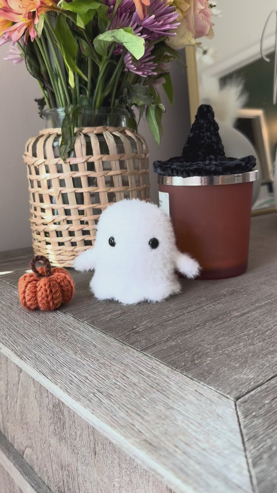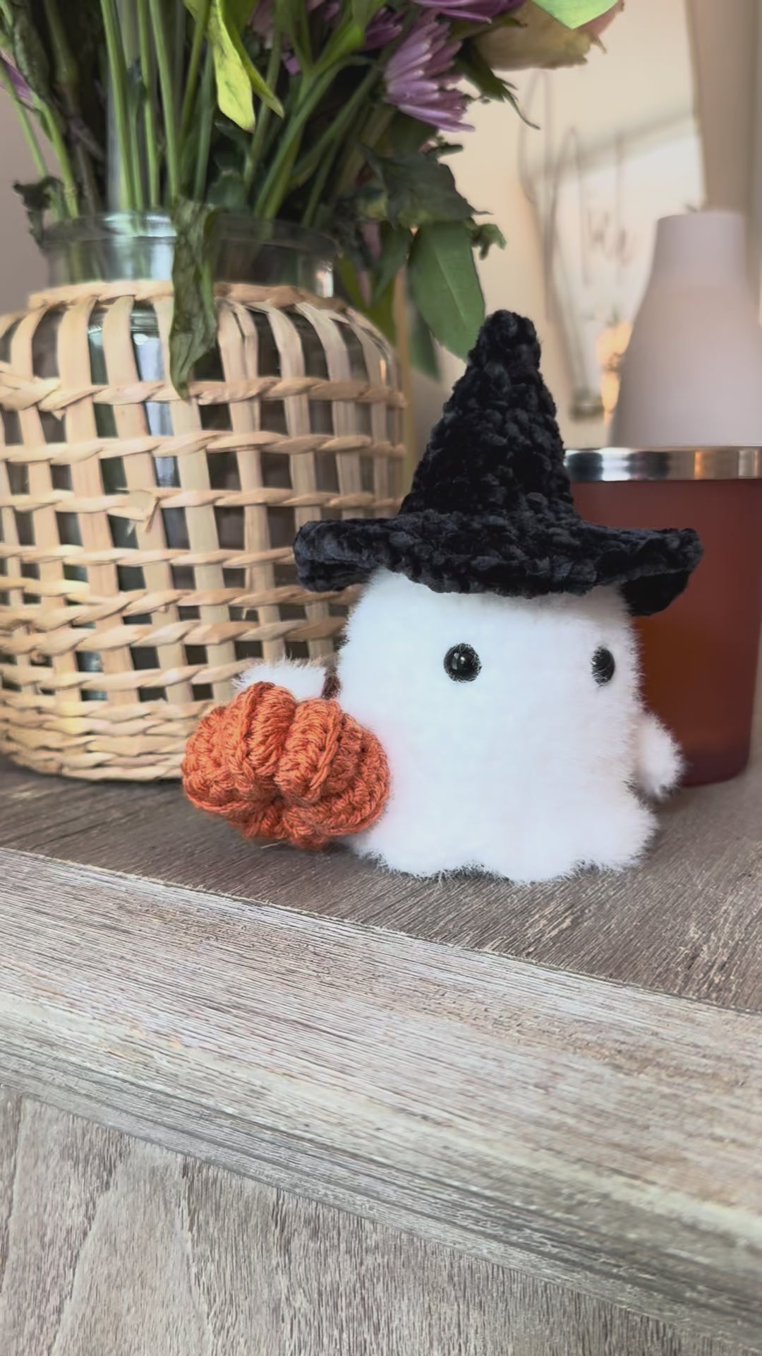 Tiny Lil Fuzzy Ghost Crochet Pattern | Quick 2-Hour Halloween Amigurumi | Includes Pumpkin Purse + Witch Hat Accessories | Low-Sew Experienced Beginner PDF